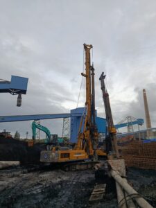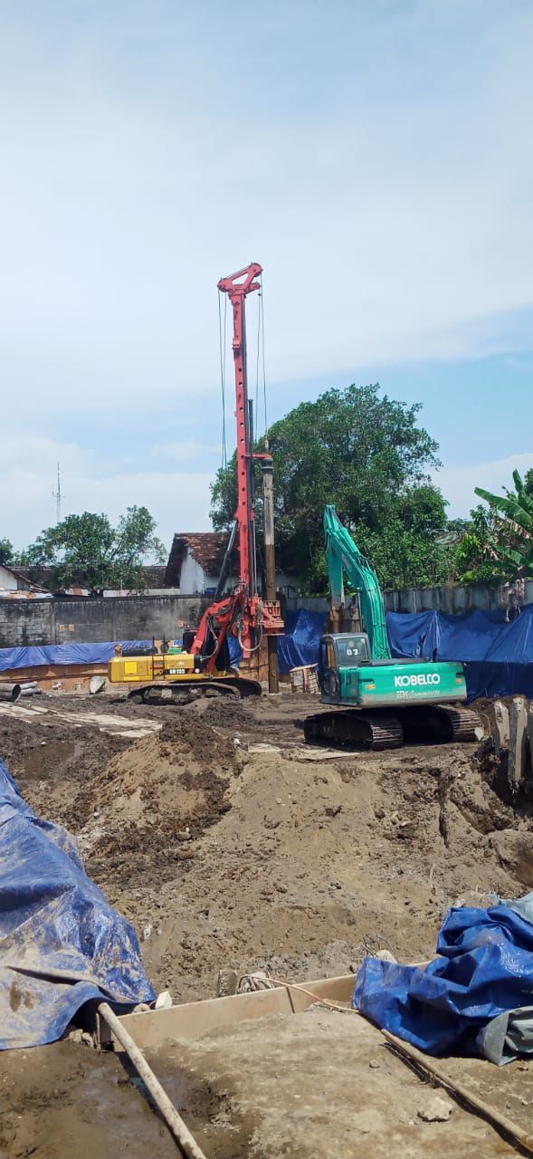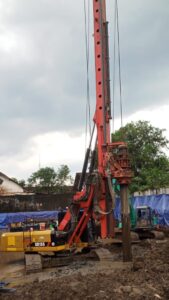 Mesin bor berat (drilling rig) digunakan untuk mengebor tanah sampai kedalaman yang direncanakan, berdasarkan data geoteknik. Dalam proses ini, temporary casing sering dipasang untuk menahan lubang agar tidak runtuh.